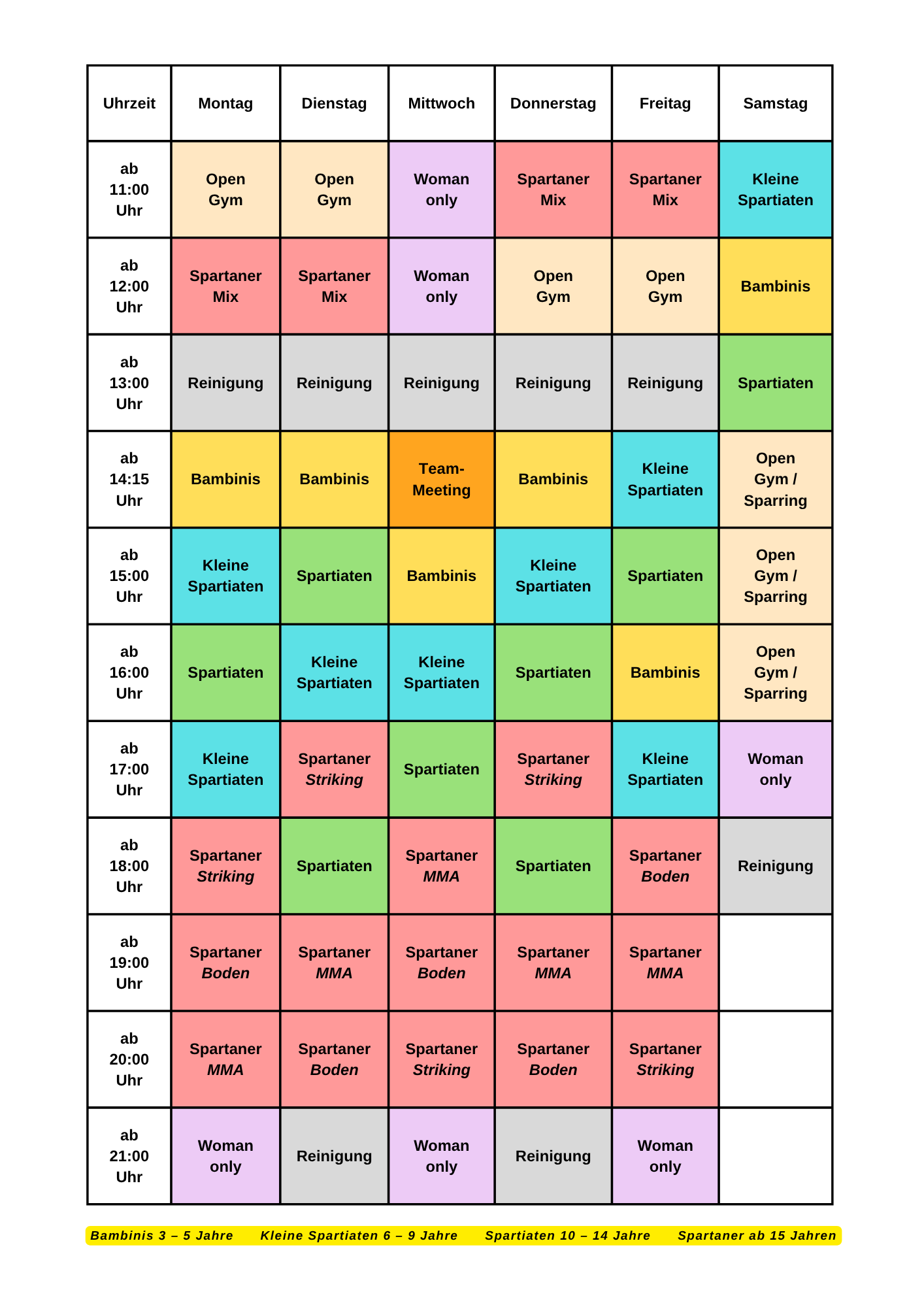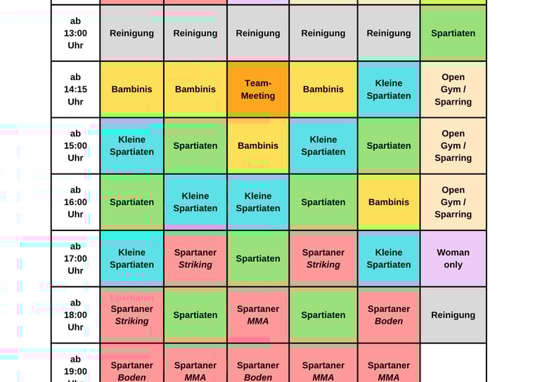 Trainingszeiten & Kurse